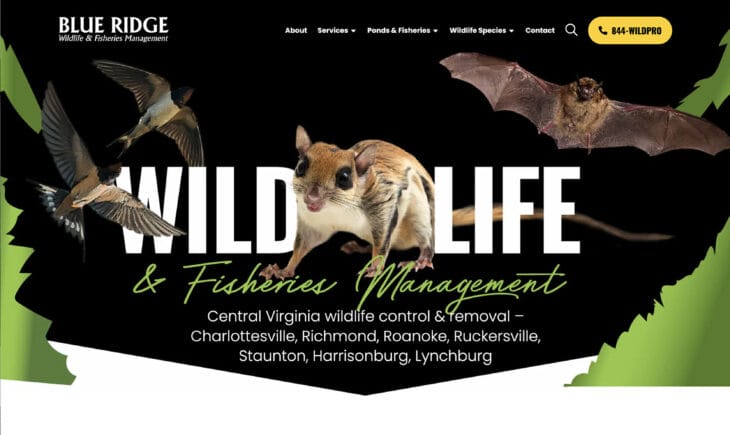 Blue Ridge Wildlife & Fisheries Management came to us for a professional website that represented the company’s expertise, showcased their extensive services, and offered valuable resources for potential and existing customers. It was a priority for their website to be search engine optimized to target Blue Ridge’s service areas in the state of Virginia and to receive top-level results in web searches for key phrases.